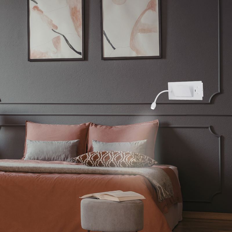 Aplique Led Dirigible Cuadrado Blanco Luz Calida 3W+5W USB