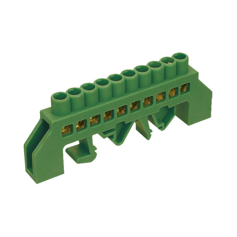 Barra Aisladora De Conexion Verde 10 Polos P/riel Din 35mm