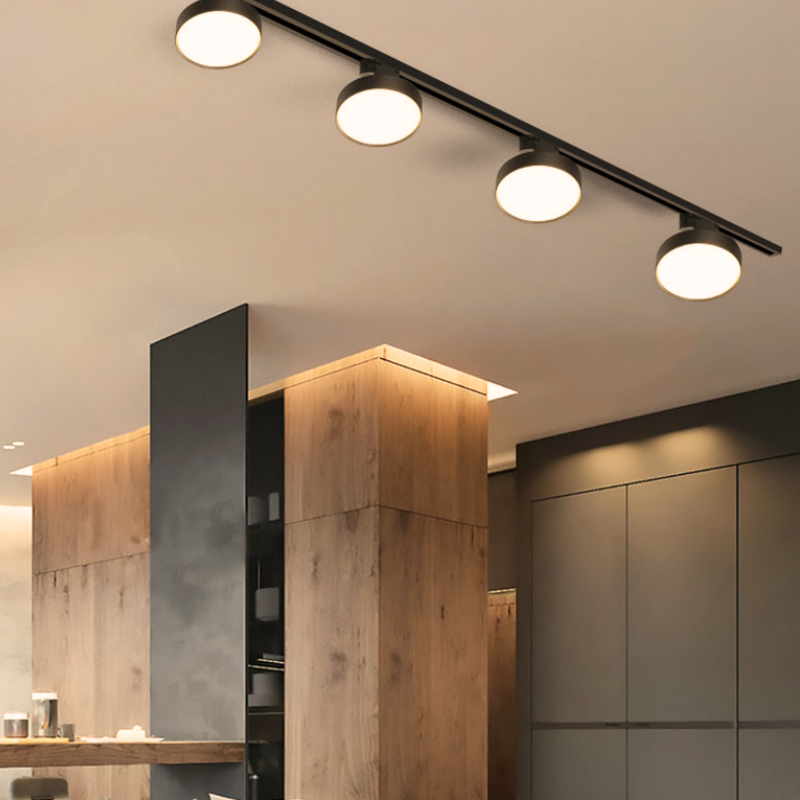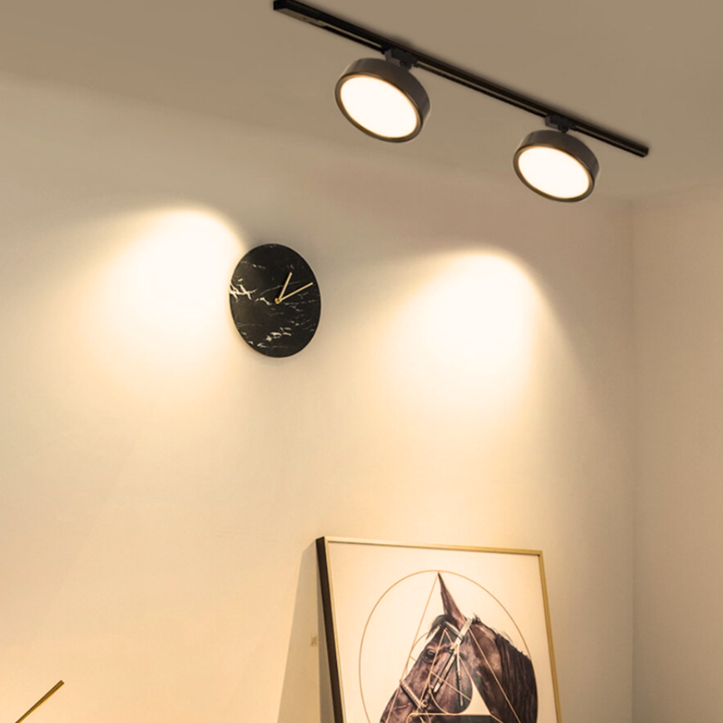 Foco Riel Tipo Panel Led Redondo Negro 12W Luz Cálida