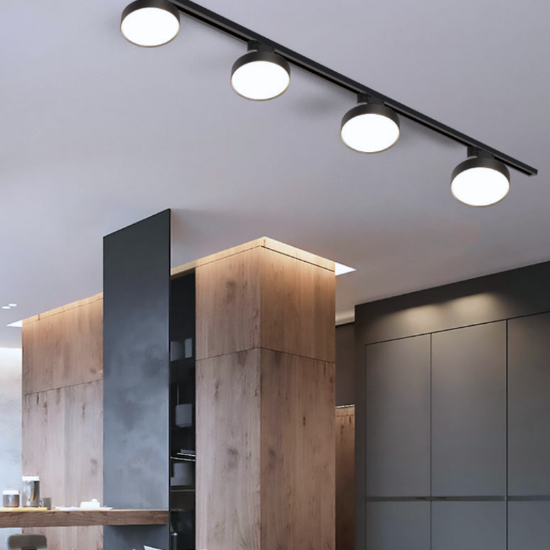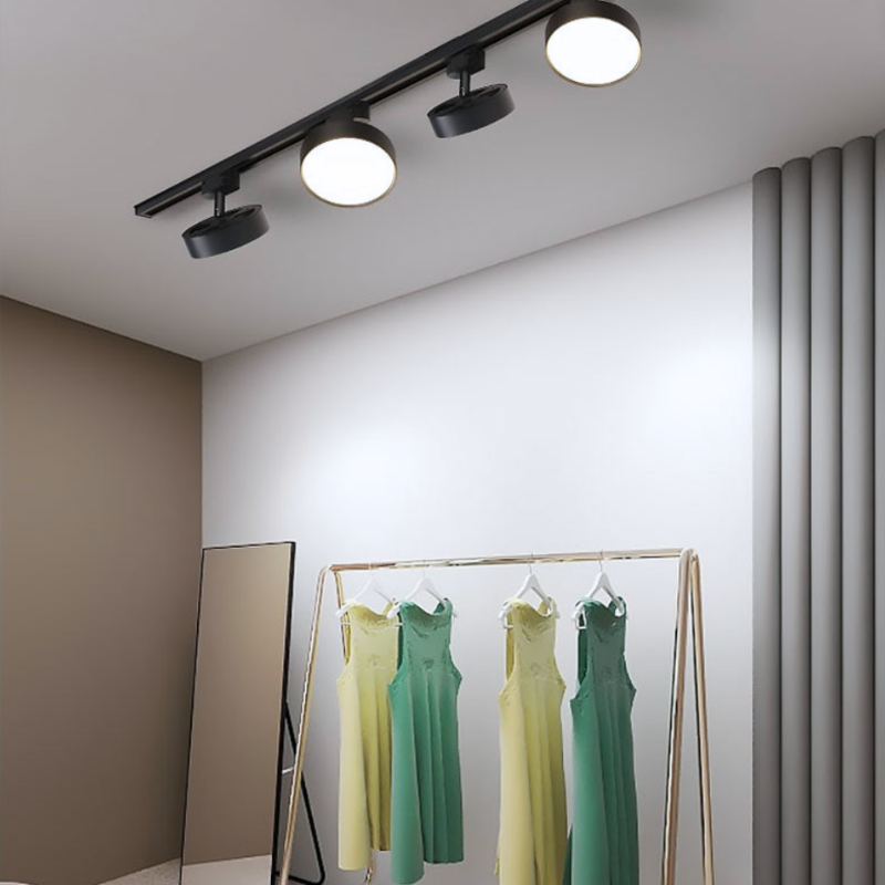 Foco Riel Tipo Panel Led Redondo Negro 12W Luz Neutra