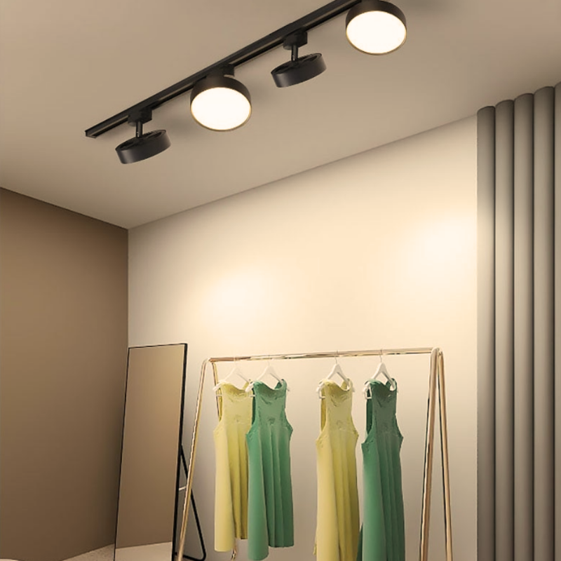 Foco Riel Tipo Panel Led Redondo Negro 18w Luz Cálida Modelo Qutu