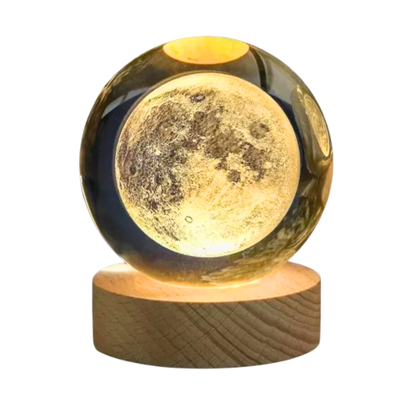 Lámpara de Mesa Esfera de Cristal 6"Diseño Luna 1W USB Luz Cálida