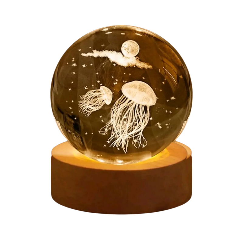 Lámpara LED con forma de esfera de cristal, cuenta con luz cálida lo cual la hace perfecta para crear un ambiente acogedor y relajante. Esta lámpara se conecta mediante USB y es ideal para mesas de noche o escritorios.