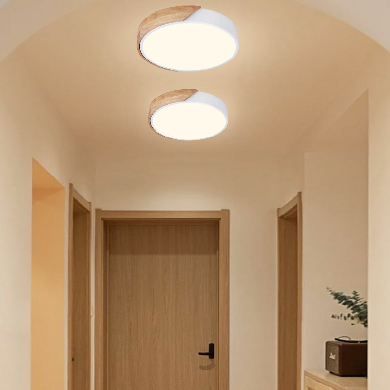 Lámpara Led Modelo Hinata C/Control Redonda Sobrepuesta 24w 30cm Mdf Blanca 3000-4000-6000k