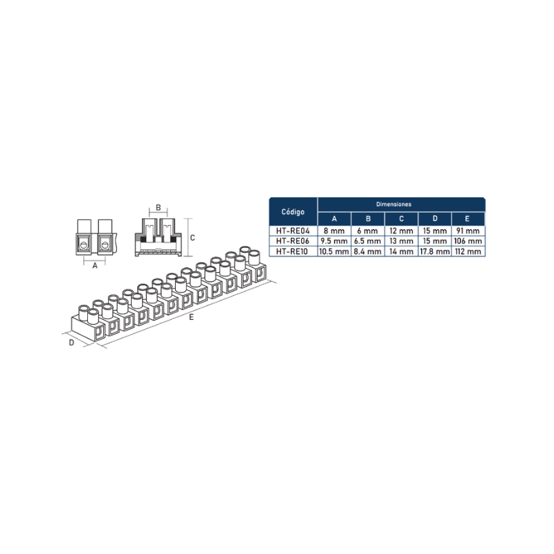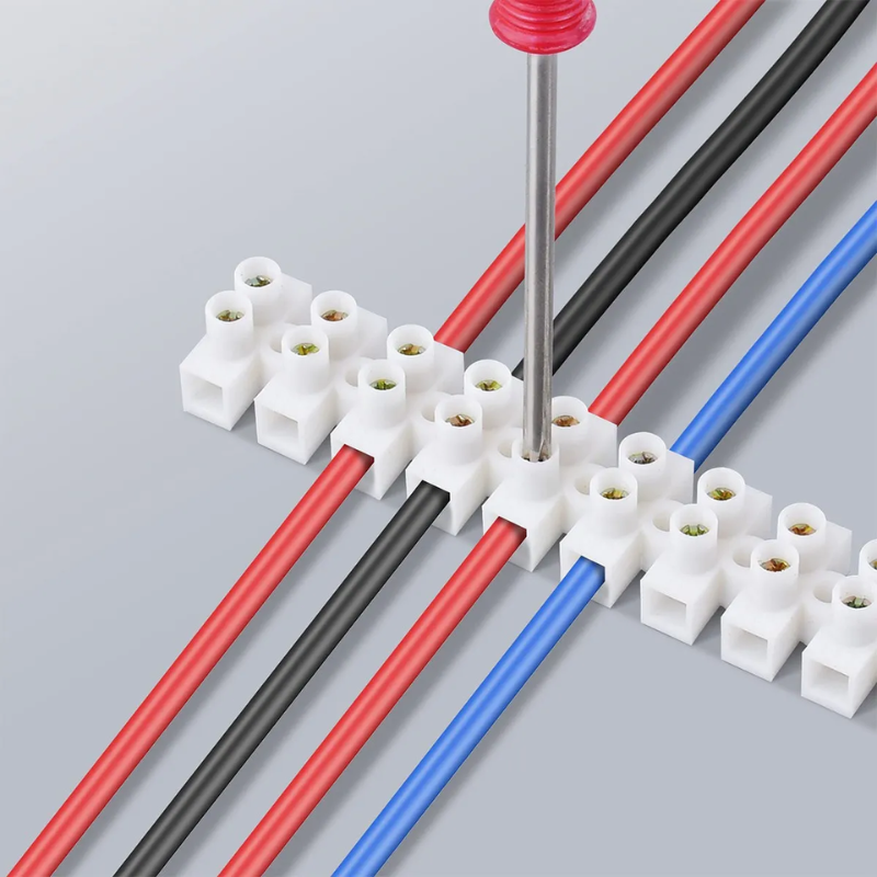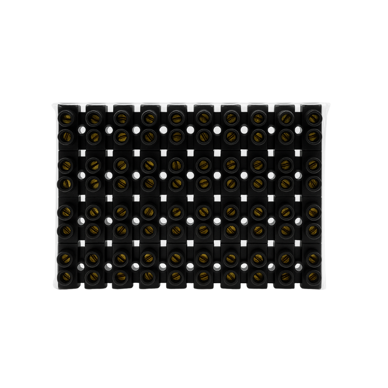 Regletas de conexión de alta calidad, fabricada en termoplástico polipropileno con tornillos de acero galvanizado y contacto de latón. Se utiliza para realizar derivaciones y conexiones eléctricas seguras con conductores de cobre o aluminio en equipos eléctricos y de iluminación. Los bornes de la regleta se pueden cortar de forma manual