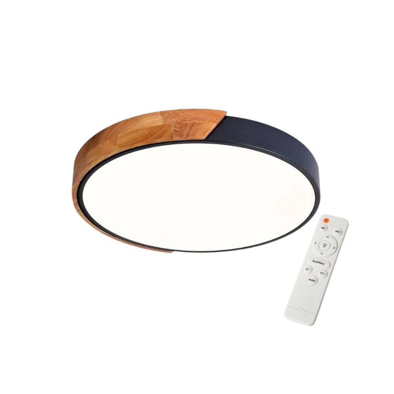 Lampara Redonda Sobrepuesta Madera y Negro con control 40cm 36+36W